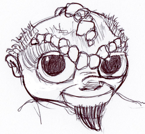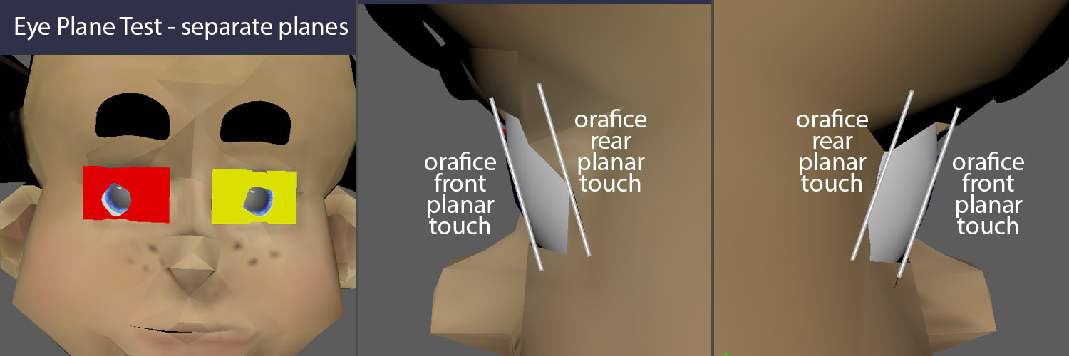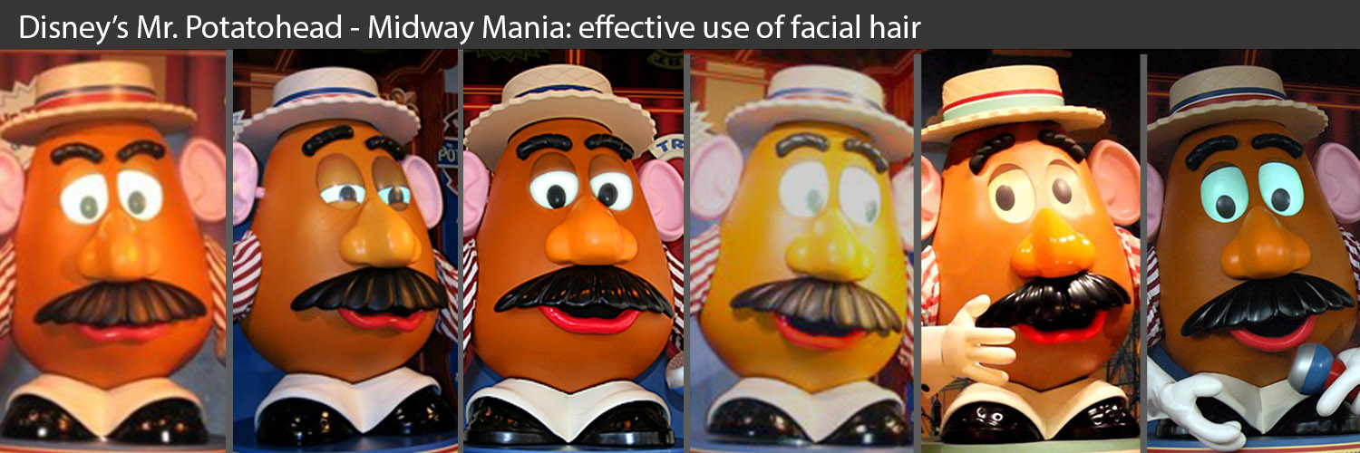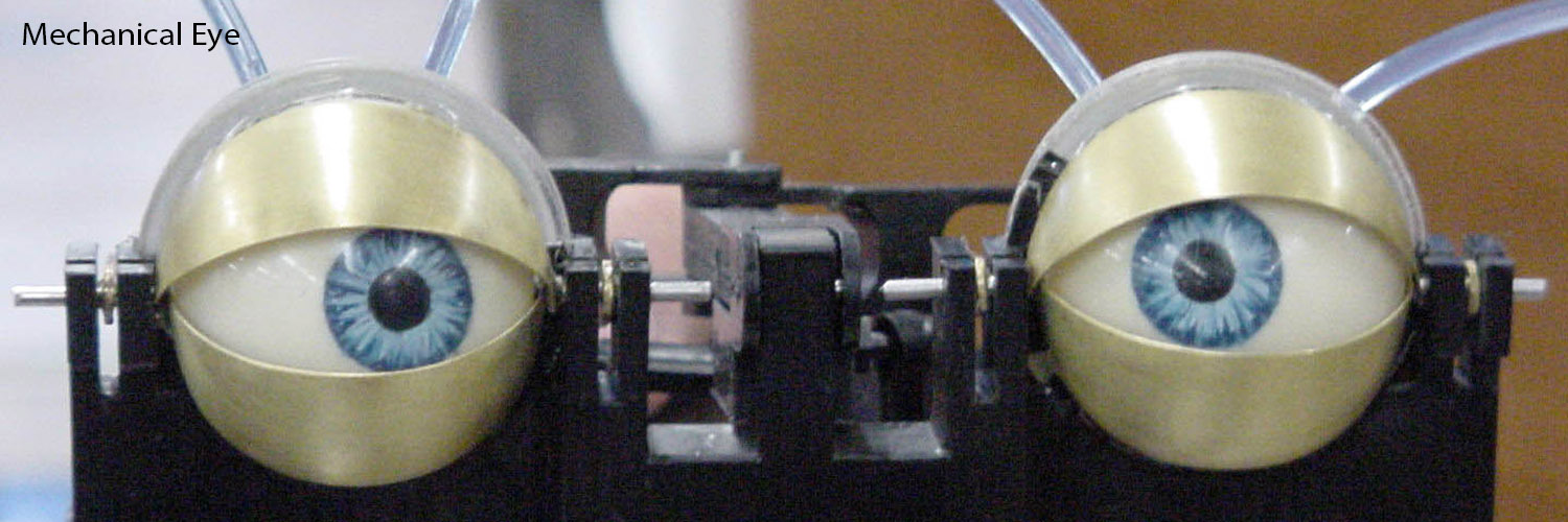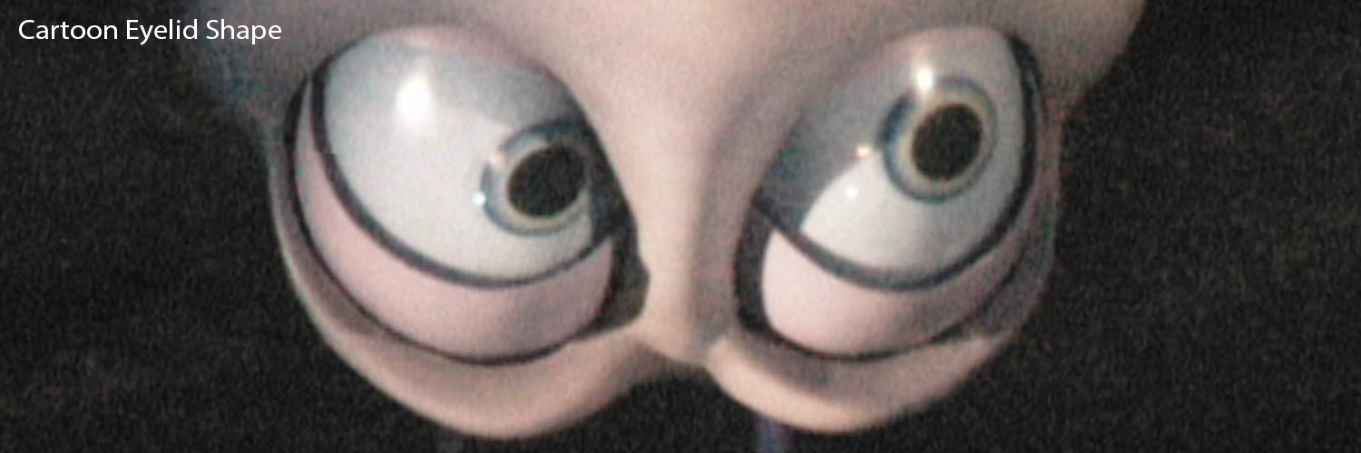 Abstract characters ratchet up the difficulty tremendously, as cartoon eye expression breaks lots of rules to exaggerate all the small, subtle cues in human expression. Cues that originate with a slight furrow and knit get abstracted into changing eyelid shapes to accentuate anger/focus along with having the entire brow ridge collapse down over the eyeball. Cartoon vocabulary completely re-writes the real-world motion for dramatic impact, and that then has to, somehow, be designed into our physics-contrained mechanical design. Some days that just seems incredibly unfair. To the point that we look for other ways to address eye expression. More on that tomorrow.