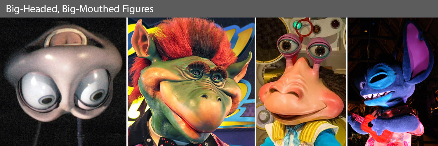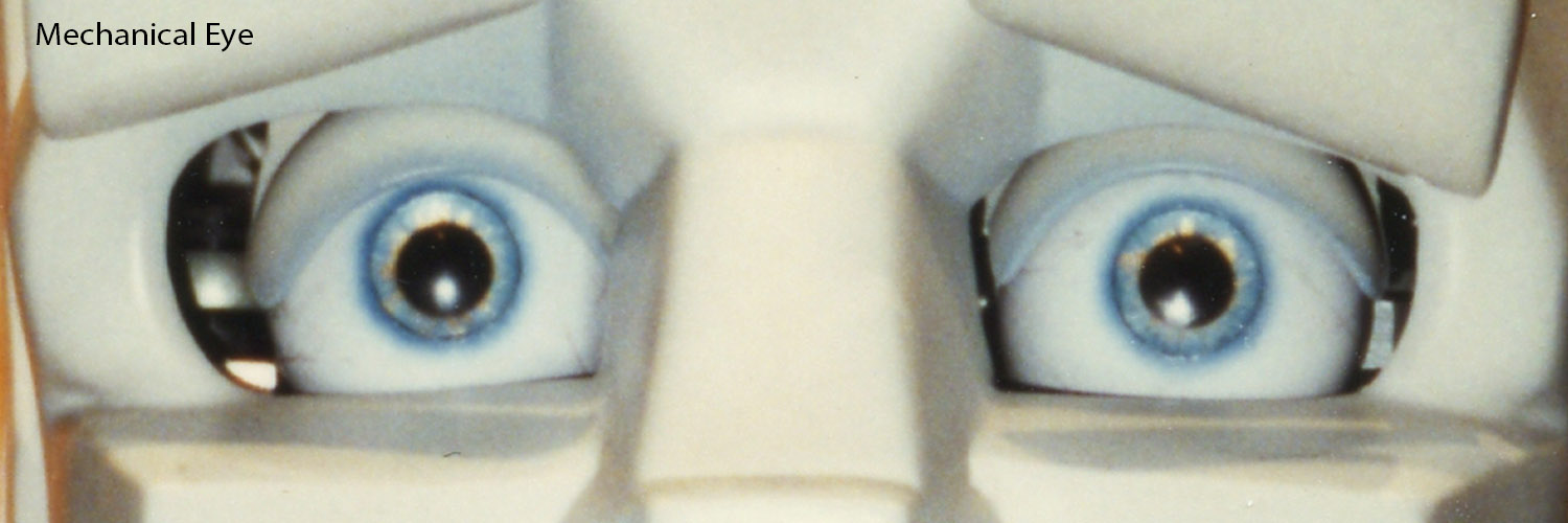 There is a basic rule of mechanical design for high-duty-cycle applications (like theme parks): Things that move can't touch other things. This is an extremely unfortunate rule and maybe the one that has the most significant impact on animatronic design. It certainly is problematic when it comes to the mouth and eyes. Basically, there has to be a gap between the eyeball and the lid. And if the eyelid is a separate mechanism from the face skin, there has to be a gap between the lid and skin. These gaps look awful. Our eyes constantly 'lube' our eyeballs to maintain a nice smooth surface for our eyelids to rub against, and I suspect that there is still an awful lot of cellular upkeep to keep our lids and eyeballs in proper working order. We don't get that (yet) in the mechanical world, so even with tight tolerances eyes still look pretty nasty.