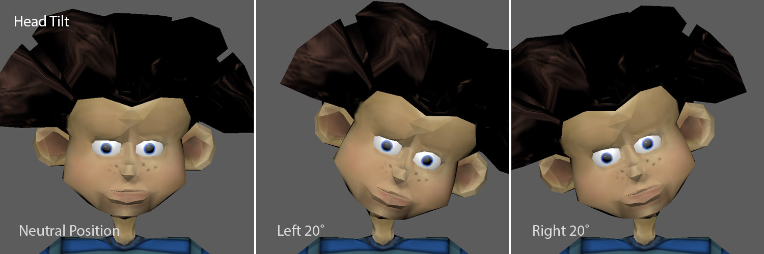 • Head Tilt - Rotation above the Head Nod on the Z-axis (Y-up).