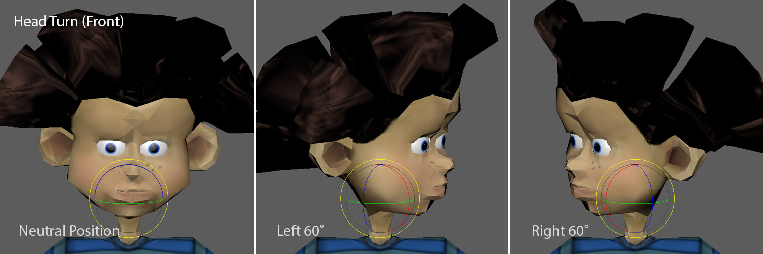 • Head Turn - Rotation on the Y-axis (Y-up) below the Head Nod (order matters).
