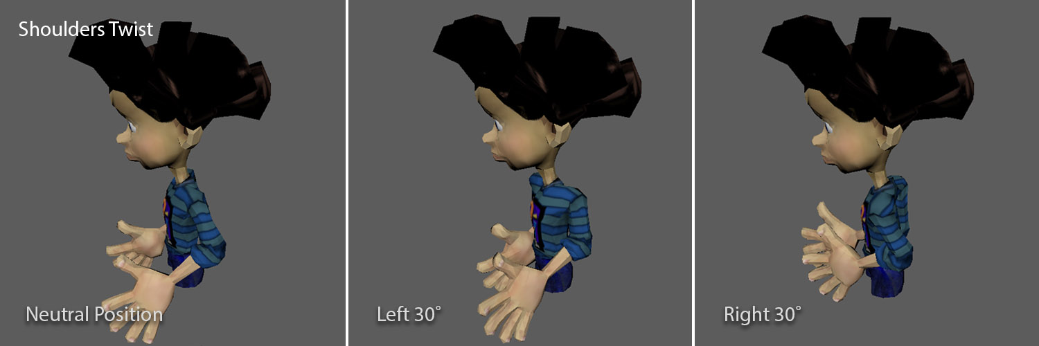 • Torso Sidebend - Rotation above the Torso Forebend on the Z-axis (Y-up).