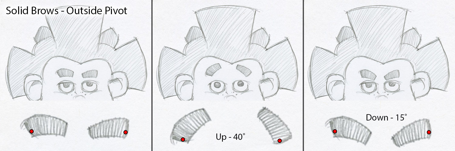 And that is for normal human eyes. Abstract characters break lots of physics rules, with non-spherical eyes that can't easily rotate on two axis, and even if they could, would have the eyeballs collide inside the head. The result is often less range of motion of the pupil, which is exactly the opposite of what abstract character need to stay on-model.