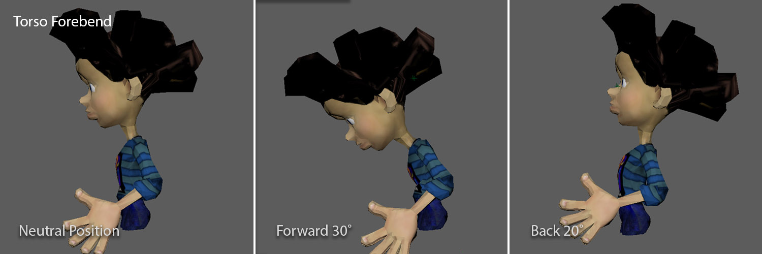 • Torso Forebend - Rotation near the stomach on the X-axis (Y-up).