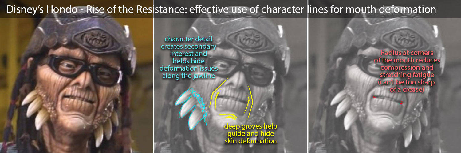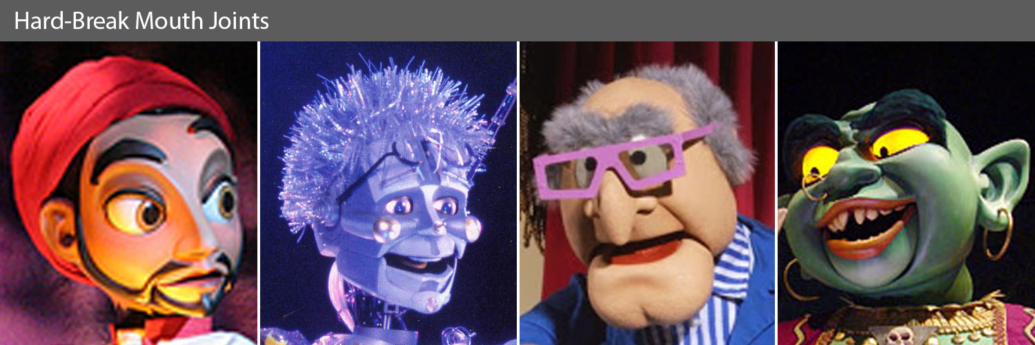 The result tends to be that the Jaw function has to try and cover all of the things the mouth does. Putting the pivot back at the natural jaw pivot point just makes it look terrible if that's the only function you have. So we move the pivot point forward so if you squint it might look like its a little bit of lip motion along with the jaw movement. And then we have to animated the figure to help with that conceit - skipping some syllables and accentuating others to try and make the lack of complexity any more noticeable than it has to be. It's an imperfect solution, but one that still takes quite a bit of care and craft to make it more, rather than less, effective.
