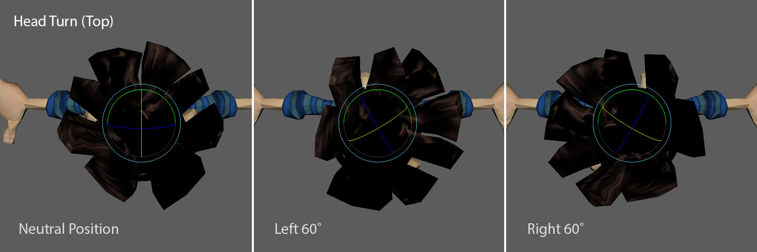 • Head Turn - Rotation on the Y-axis (Y-up) below the Head Nod (order matters).